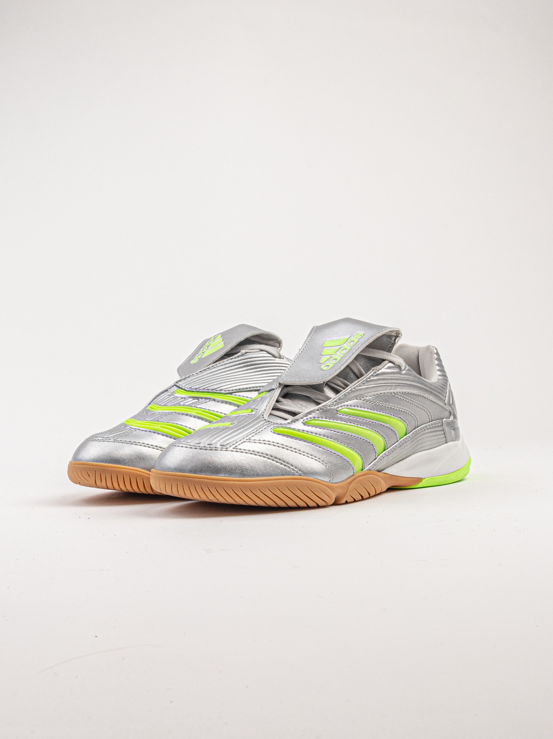 The Adidas Predator Sala Silvmt / Siggn brings agile indoor–court performance with a sharp, modern look. Built with a breathable mesh and synthetic upper, it delivers lightweight control and support during fast play. The non-marking outsole provides reliable grip for quick direction changes, while signature Predator accents add that unmistakable sporty edge.