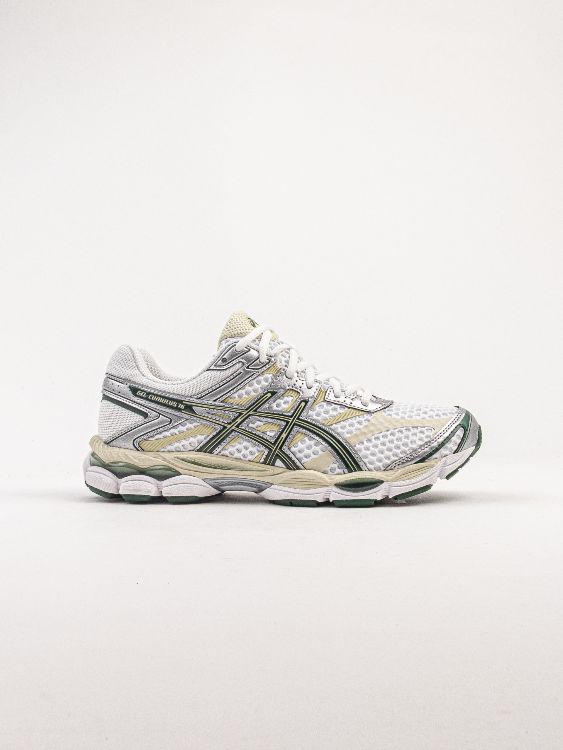 The ASICS Gel‑Cumulus 16 in White / Forest Night blends everyday performance with a sleek, versatile colourway. Built for runners and lifestyle wearers alike, this silhouette features ASICS’ signature rearfoot GEL® cushioning that absorbs impact for smooth transitions and enhanced comfort. The breathable mesh upper in crisp white is accented with forest night‑toned overlays for structured support and stylish contrast. With a responsive midsole and durable rubber outsole, the Gel‑Cumulus 16 delivers reliable comfort and all‑day wearability—making it ideal for daily training or casual outfits.