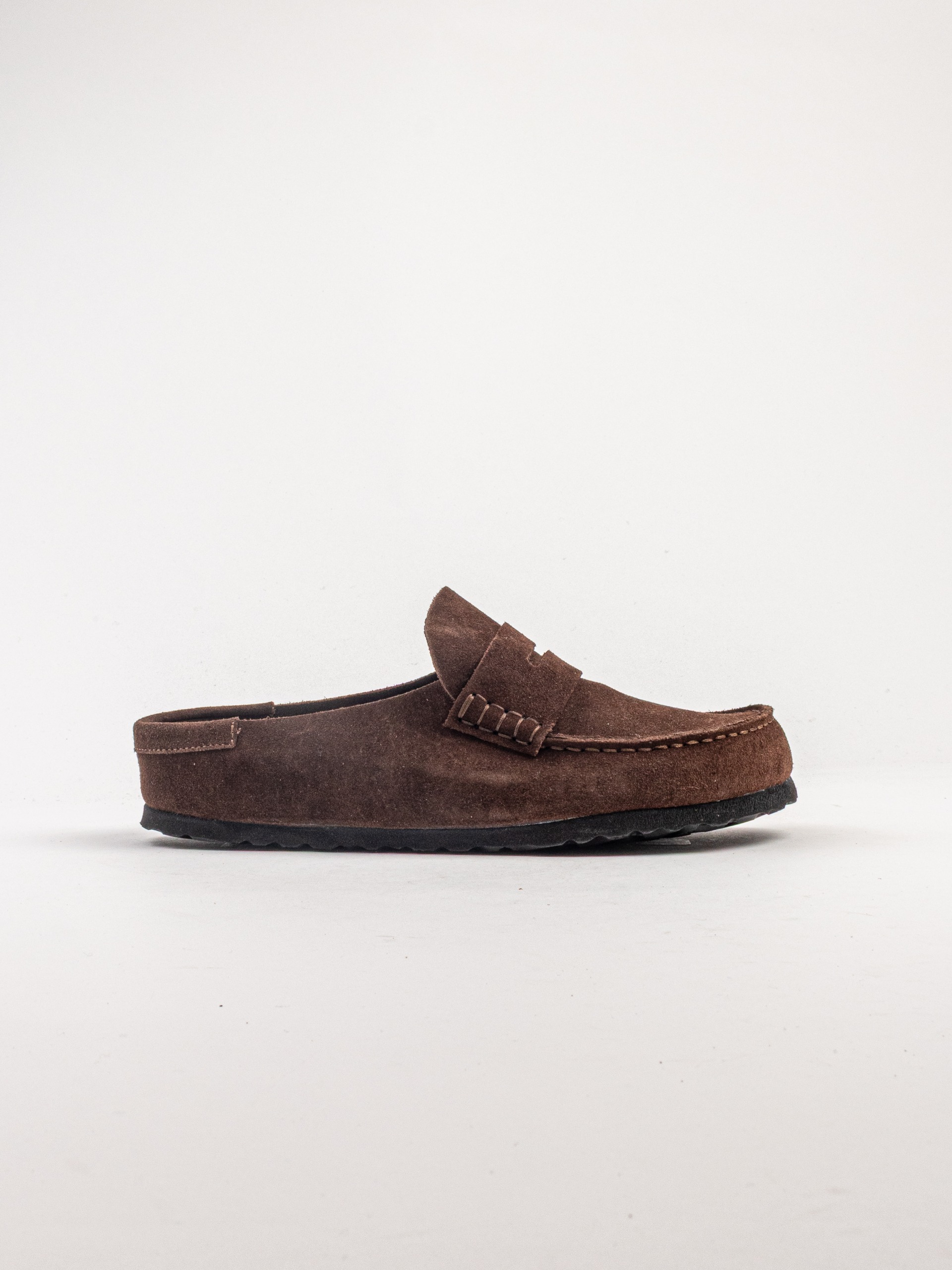 The Birkenstock Naples reinterprets classic loafer design through the brand’s signature comfort-focused lens. Inspired by moccasin styling, this slip-on silhouette features a soft suede upper with prominent stitching for a relaxed yet refined look. Built around the anatomically shaped cork-latex footbed, it delivers natural support and all-day comfort, while the EVA and rubber outsole ensures lightweight cushioning and durability. Finished in the rich Carafe colorway, it offers a warm, understated aesthetic perfect for everyday wear.