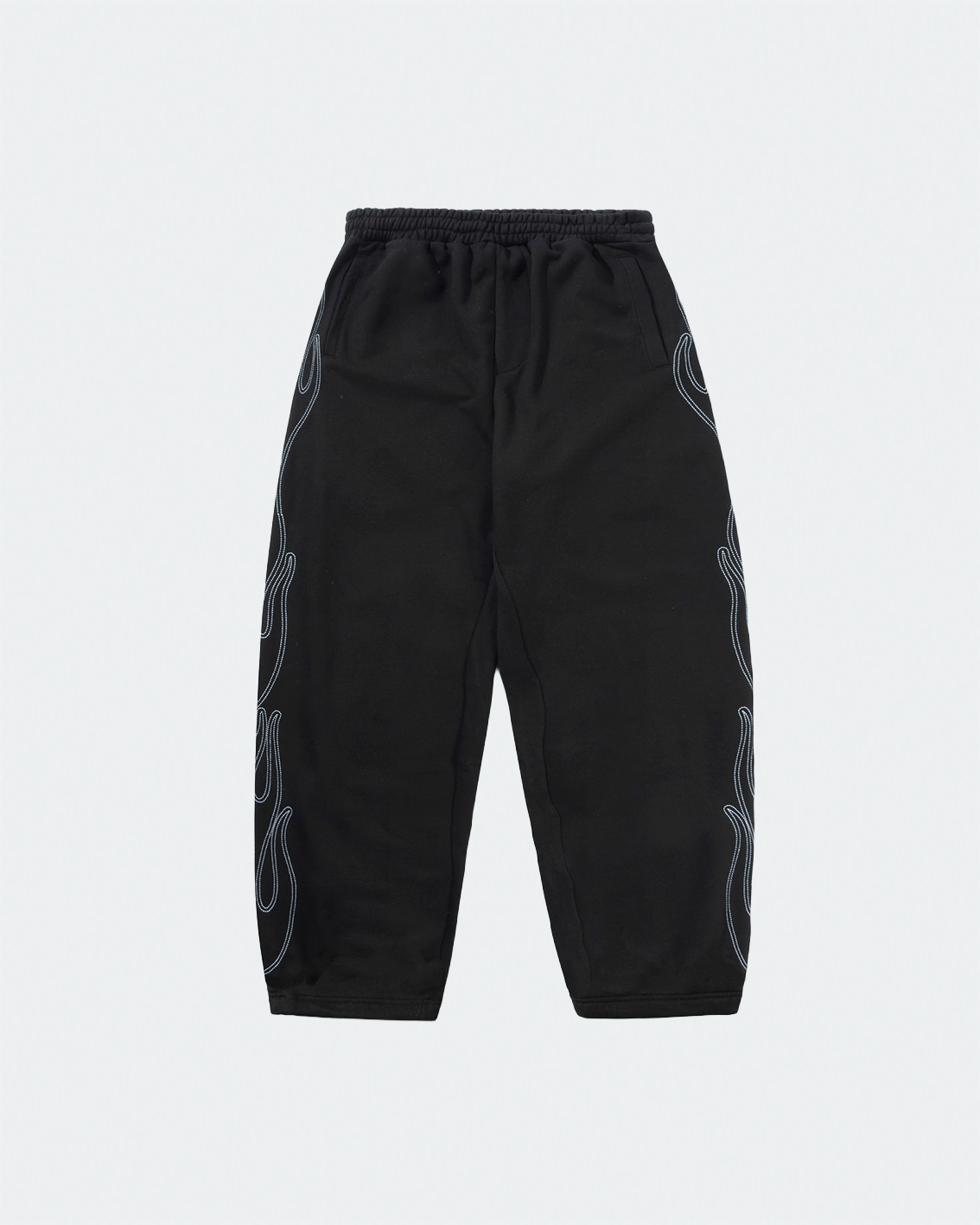 The Butter Goods Flame Fleece Pants bring bold graphic energy to a relaxed, street-ready silhouette rooted in skate culture. Constructed from heavyweight cotton fleece, these pants offer a soft yet durable feel, designed for both comfort and everyday wear. The baggy fit with a slight taper reflects classic skate styling, while flame graphics add a standout visual identity. Finished with an elastic waistband and internal drawstring, the Black colorway keeps it versatile while letting the design details take focus.