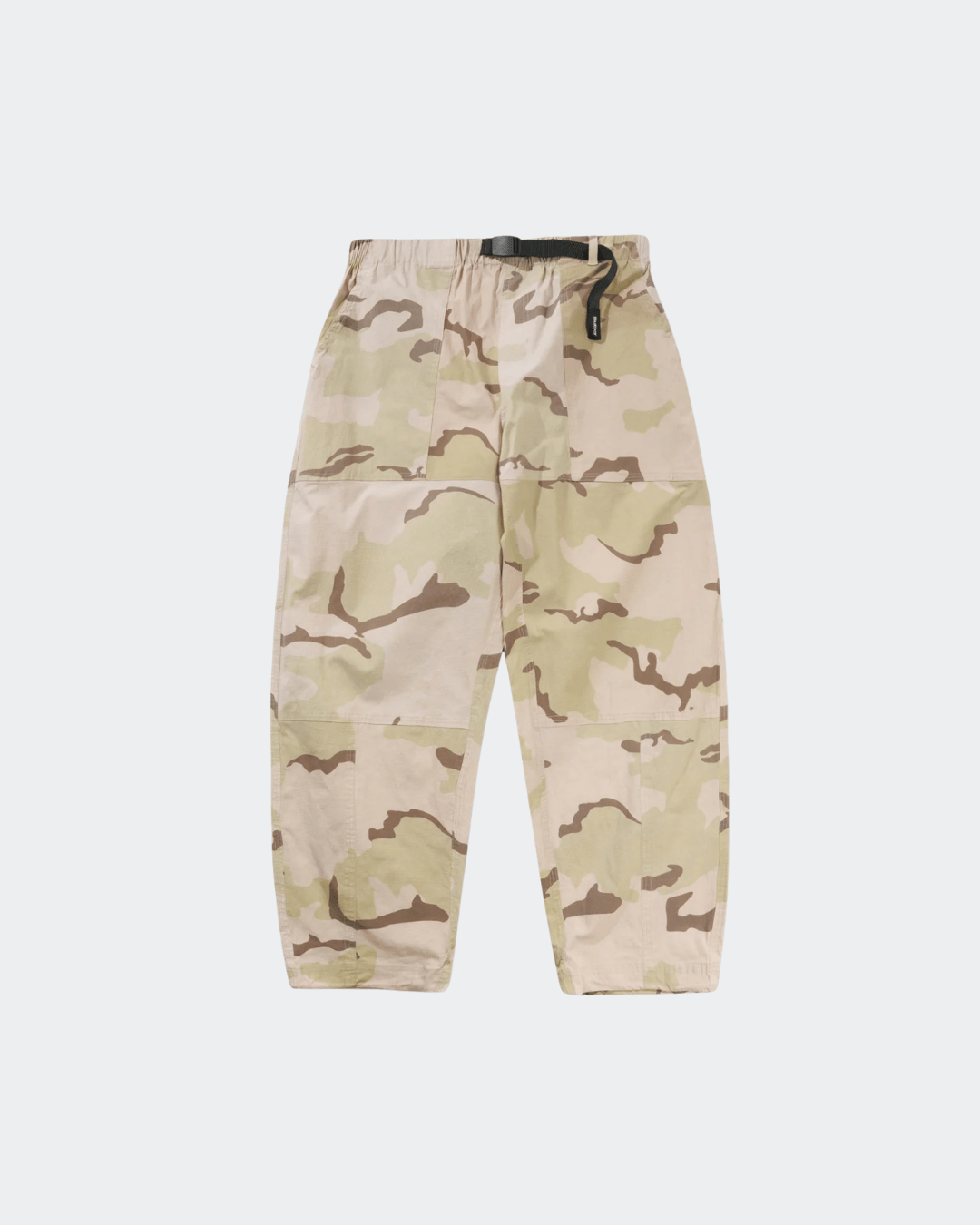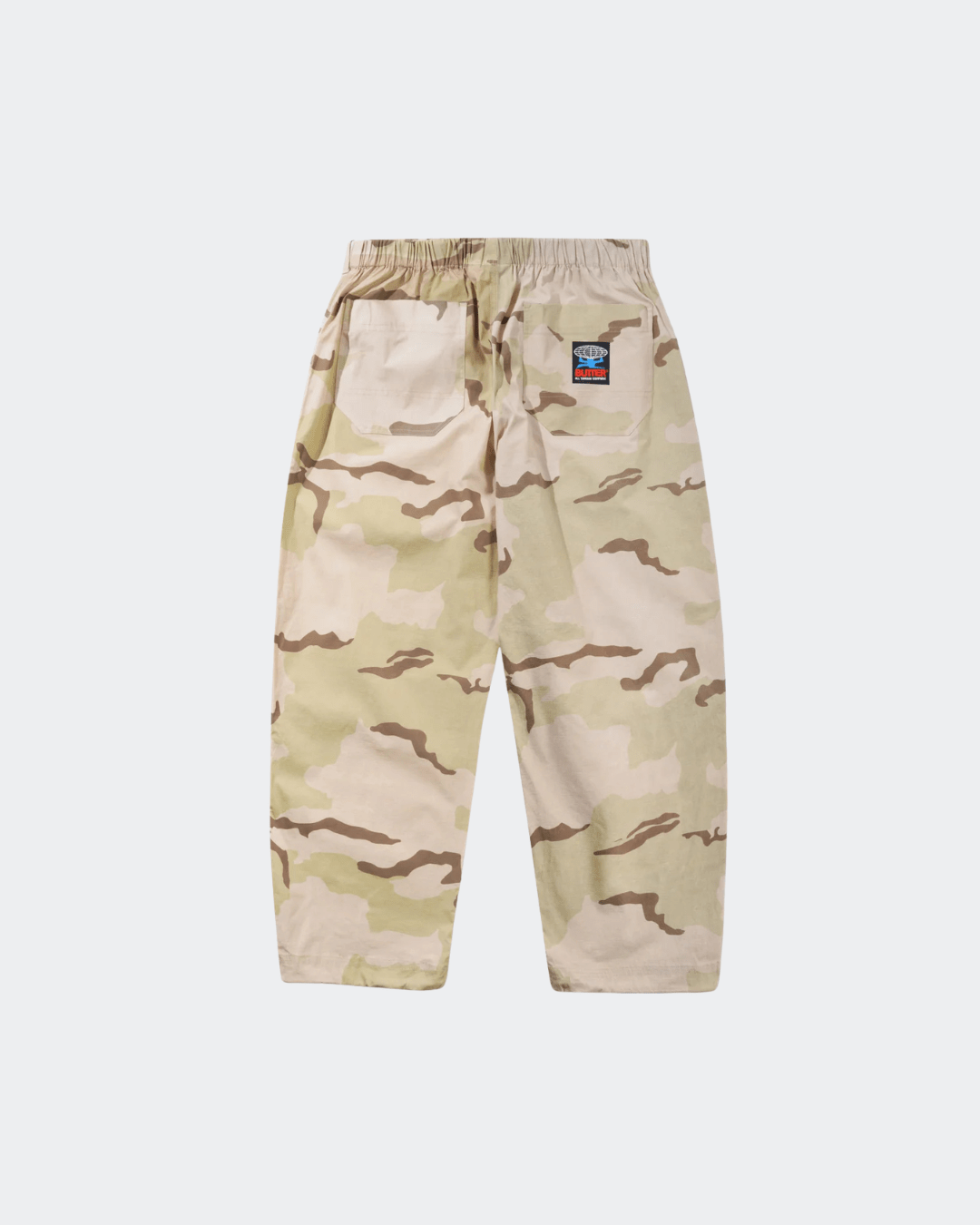 The Butter Goods TSR Pants combine technical outdoor functionality with a bold, skate-driven silhouette. Constructed from a durable cotton and elastane ripstop blend, these pants are designed to withstand everyday wear while offering flexibility and comfort. The very baggy fit with a slight taper channels classic skate styling, while features like an elasticated waistband, integrated woven belt, and adjustable leg openings ensure a customizable fit. Finished in a Dessert Camo pattern, they bring a rugged, utilitarian edge to contemporary streetwear.