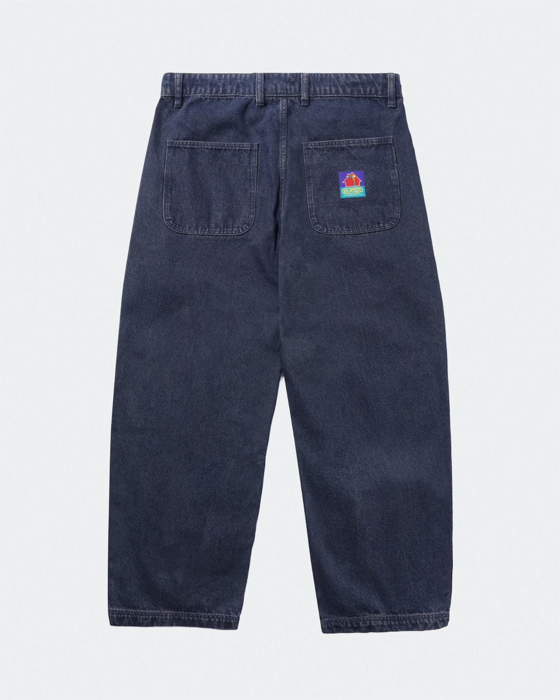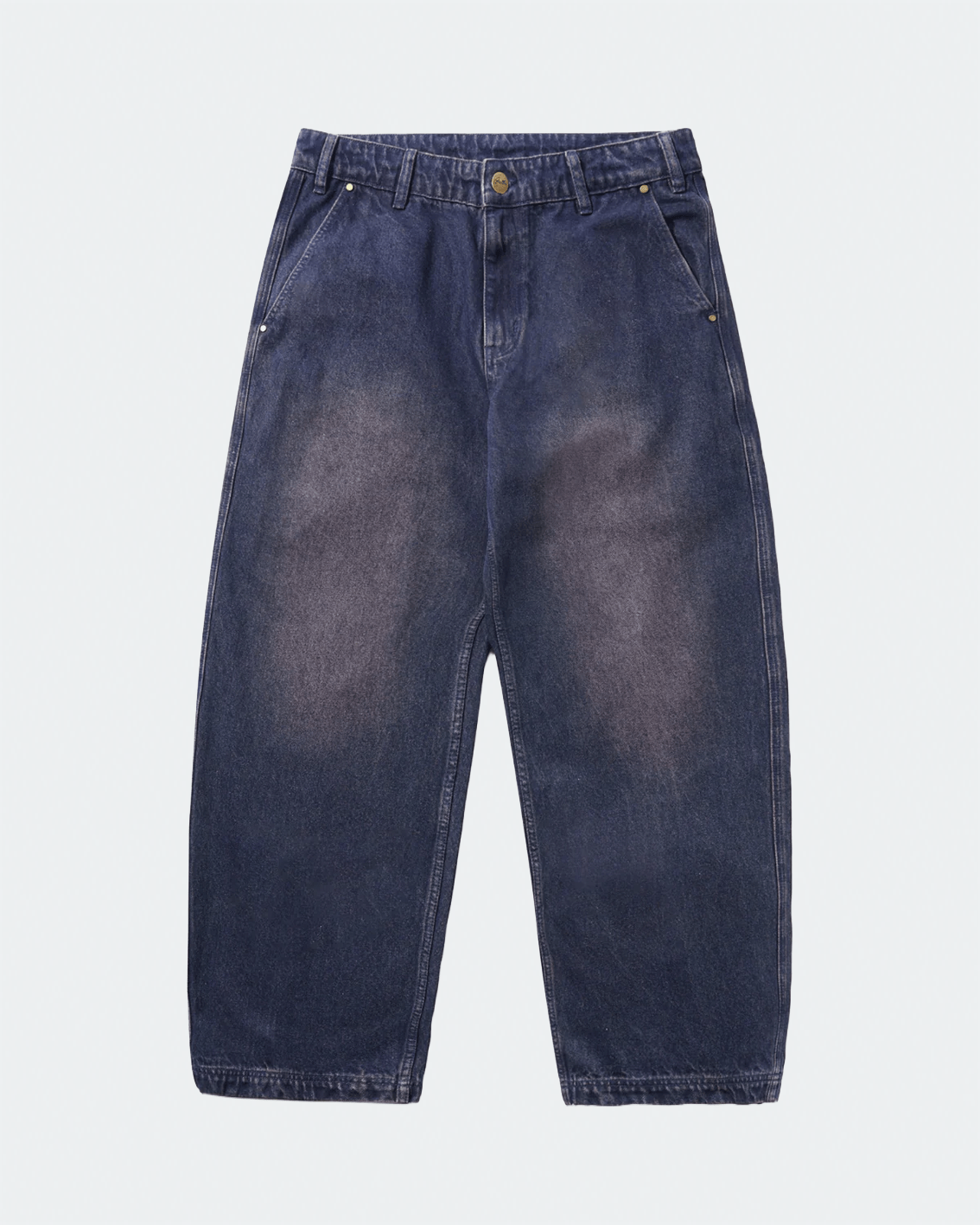 The Butter Goods Work Pants in Distressed Tinted Indigo combine classic workwear durability with a relaxed, skate-inspired silhouette. Constructed from 100% cotton denim, this baggy fit offers both structure and comfort for everyday wear. A distressed wash gives the fabric a worn-in, vintage character, while functional details like patch back pockets, belt loops, and an internal drawstring waistband enhance practicality and fit. Rooted in utility and street culture, this piece delivers a versatile, lived-in aesthetic with strong visual appeal.