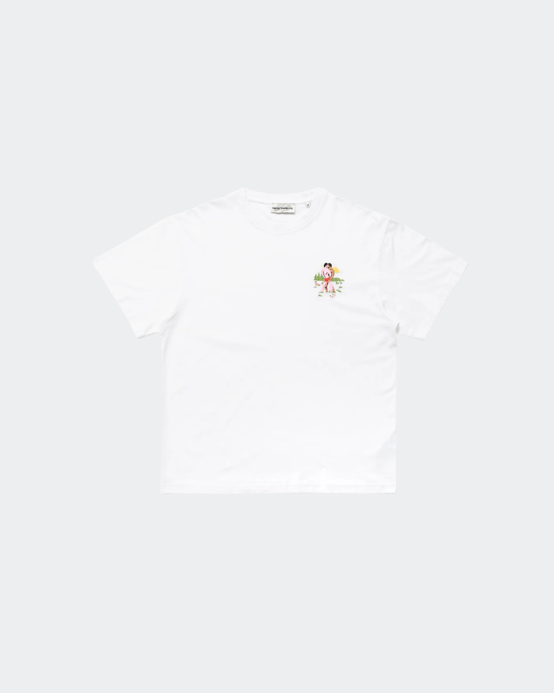 The Carne Bollente Knee Deep Desire Tee in White delivers a clean everyday silhouette infused with the brand’s signature playful and provocative identity. Crafted from lightweight 100% organic cotton, this classic crewneck T-shirt offers a relaxed fit for effortless comfort and versatility. Subtle embroidered detailing adds a refined yet expressive touch, staying true to Carne Bollente’s artistic storytelling approach. Finished in a crisp White colorway, it balances minimalism with distinctive character, making it an easy staple with personality.