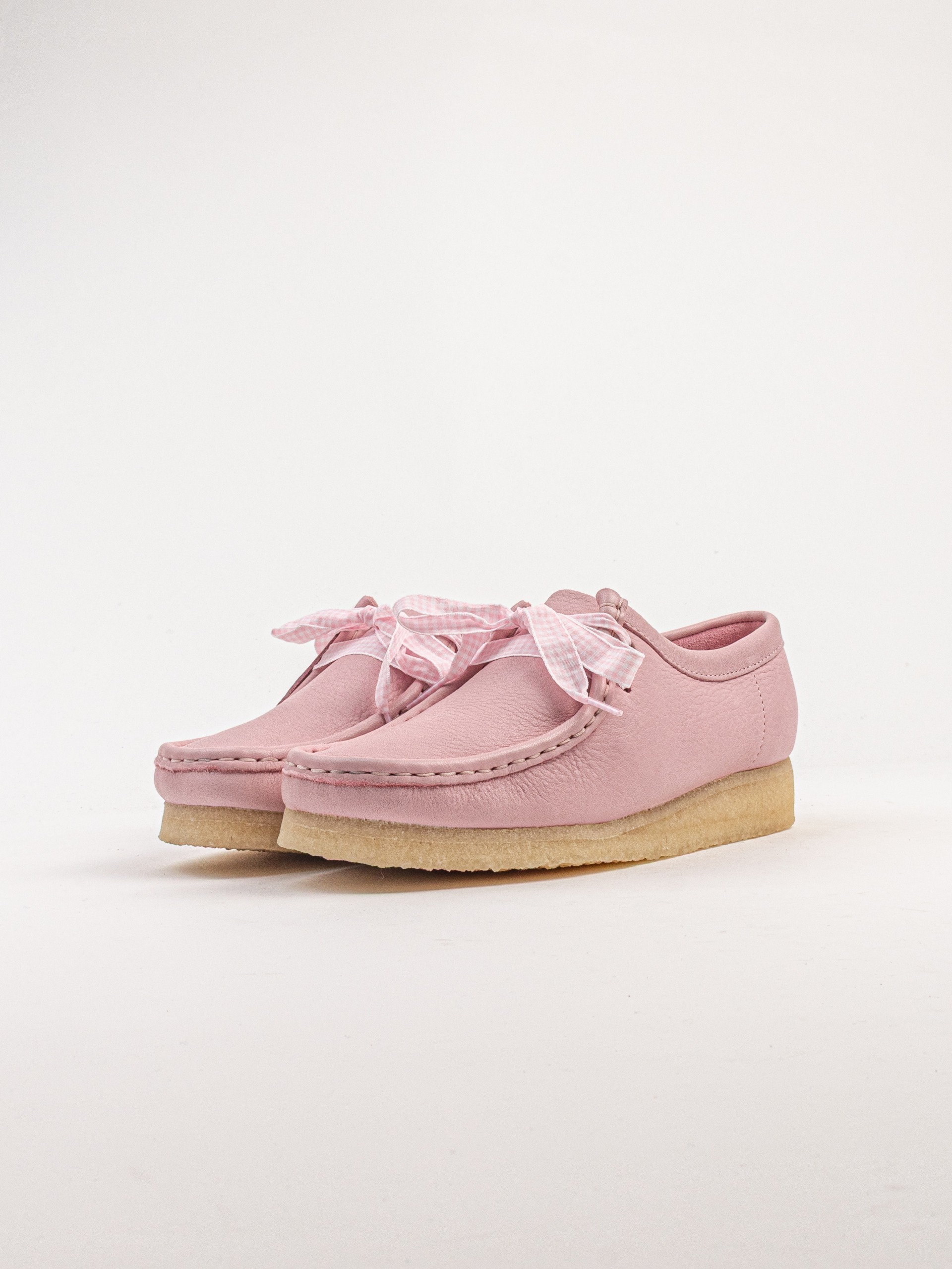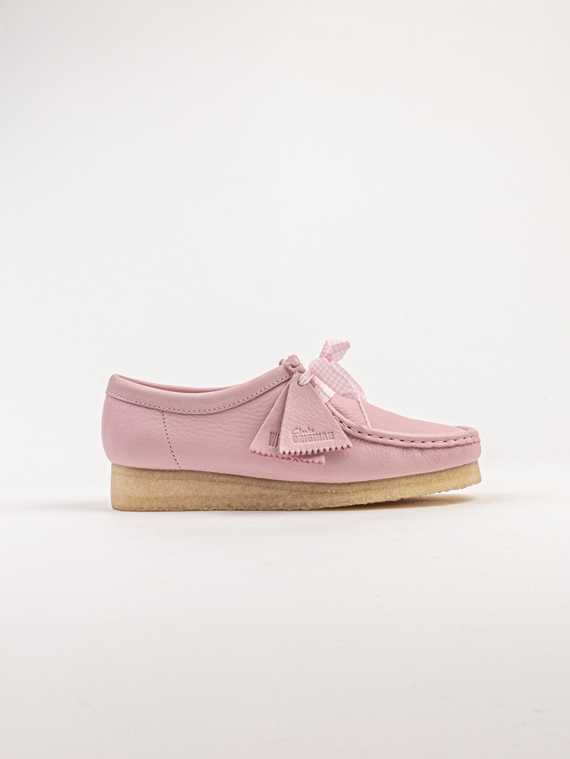 The Clarks Originals Wallabee in Baby Pink Leather refreshes the iconic moccasin silhouette with a soft, playful twist. Crafted from premium leather, this version stays true to the brand’s heritage with its signature hand-stitched apron seam and classic two-eyelet design. A natural crepe outsole ensures flexible comfort, while unique details like a gingham-printed lining and dual lace options add a subtle, expressive finish. Blending timeless construction with a modern, feminine edge, this Wallabee stands out while remaining effortlessly wearable.