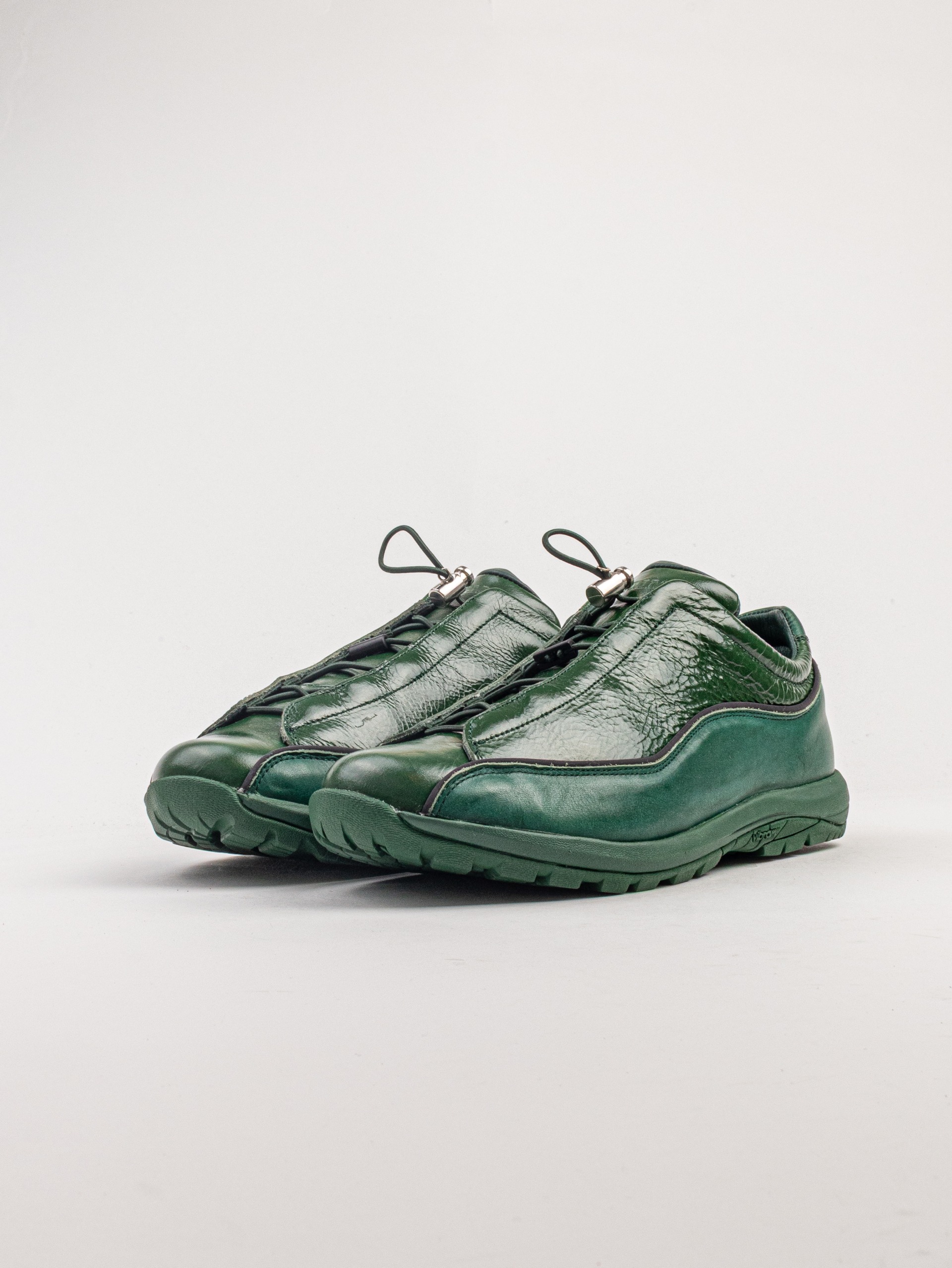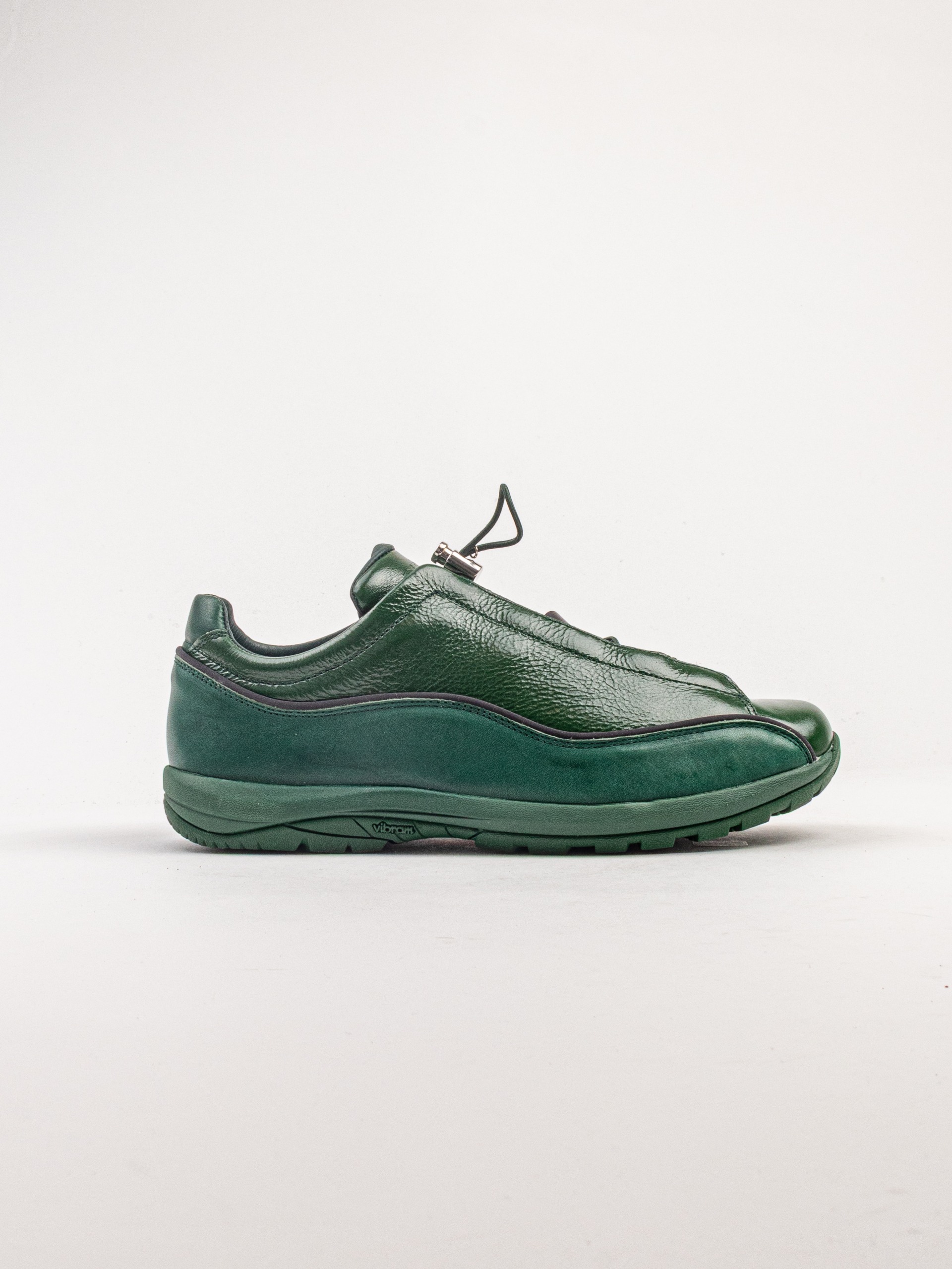 The Diemme Licata in Dark Green blends premium Italian craftsmanship with a sporty, contemporary silhouette inspired by late ’90s and early 2000s athletic footwear. Made in Italy from textured crackled leather, the upper is complemented by a smooth nappa leather rand for added structure and contrast. Designed for everyday movement, it features elastic lacing for easy wear and a lightweight Vibram® outsole that delivers flexibility, grip, and all-day comfort. A refined sneaker that balances performance influence with elevated, modern style.