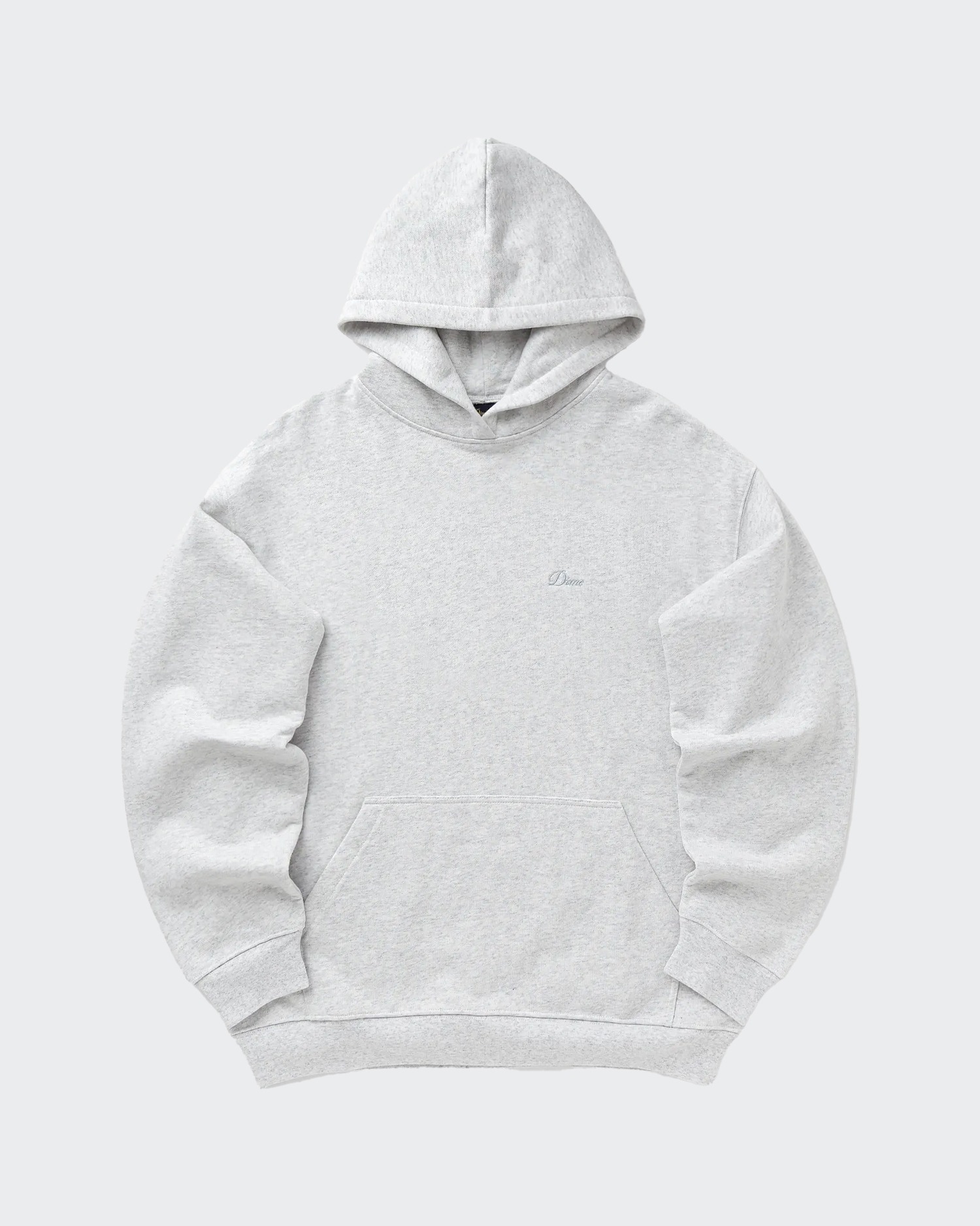The Dime Cursive Small Logo Hoodie Heather Grey brings refined simplicity to a classic streetwear essential. Crafted from premium heavyweight cotton fleece, it offers a soft interior and structured exterior for lasting comfort and durability. The relaxed fit, adjustable drawstring hood, and kangaroo pocket make it ideal for everyday wear, while the embroidered cursive Dime logo on the chest adds a clean, understated finish.