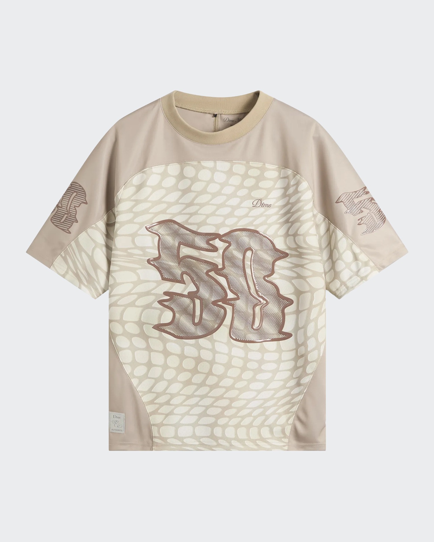 The Dime N50 Jersey Taupe brings a retro athletic feel with a modern streetwear twist. Crafted from lightweight, breathable fabric, it features contrast piping, embroidered logo detailing, and a relaxed fit that channels vintage sports aesthetics. Designed for comfort and easy wear, it bridges casual styling with Dime’s signature clean, confident attitude.