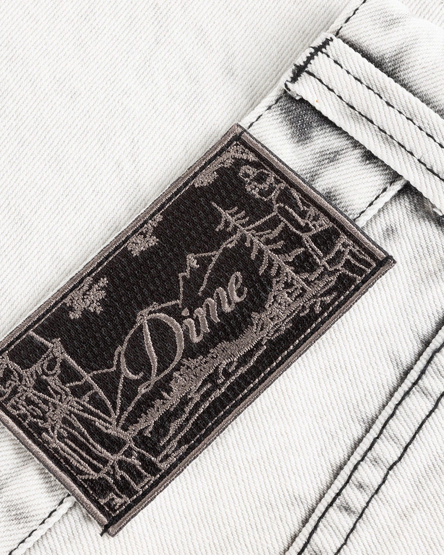 Five-pocket design with embroidered Dime logo on back pocket