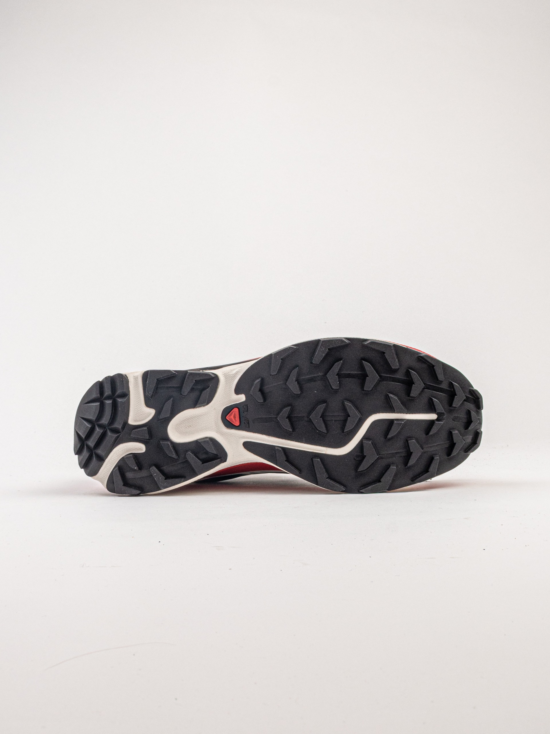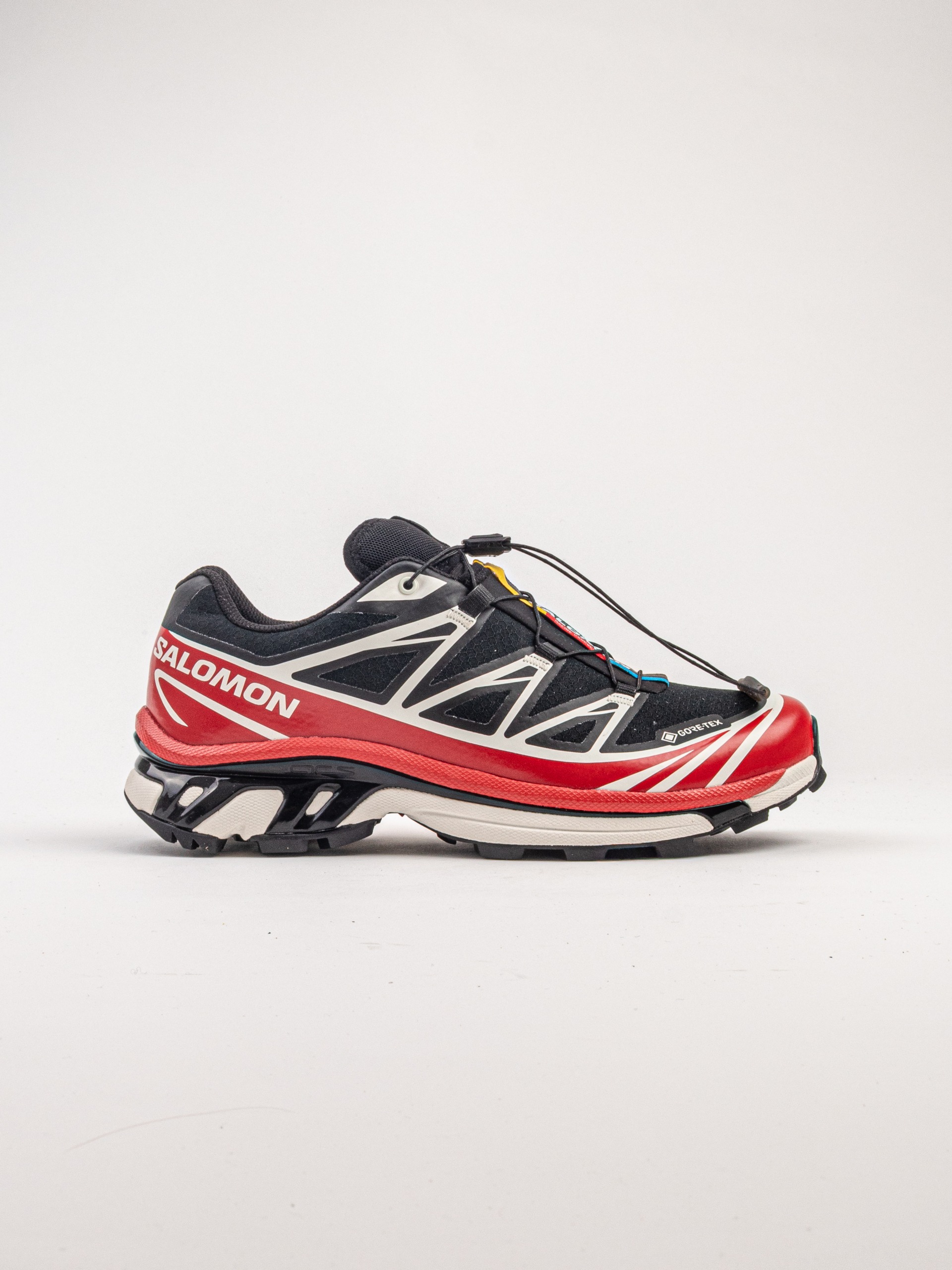 The Salomon XT-6 GTX Black / Flame Scarlet / Vanilla fuses high-performance trail technology with bold streetwear appeal. Originally designed for endurance athletes, this silhouette features a GORE-TEX membrane for full waterproof protection while maintaining breathability. The lightweight synthetic upper is paired with Salomon’s SensiFit™ and Quicklace™ systems for a secure, adaptive fit.