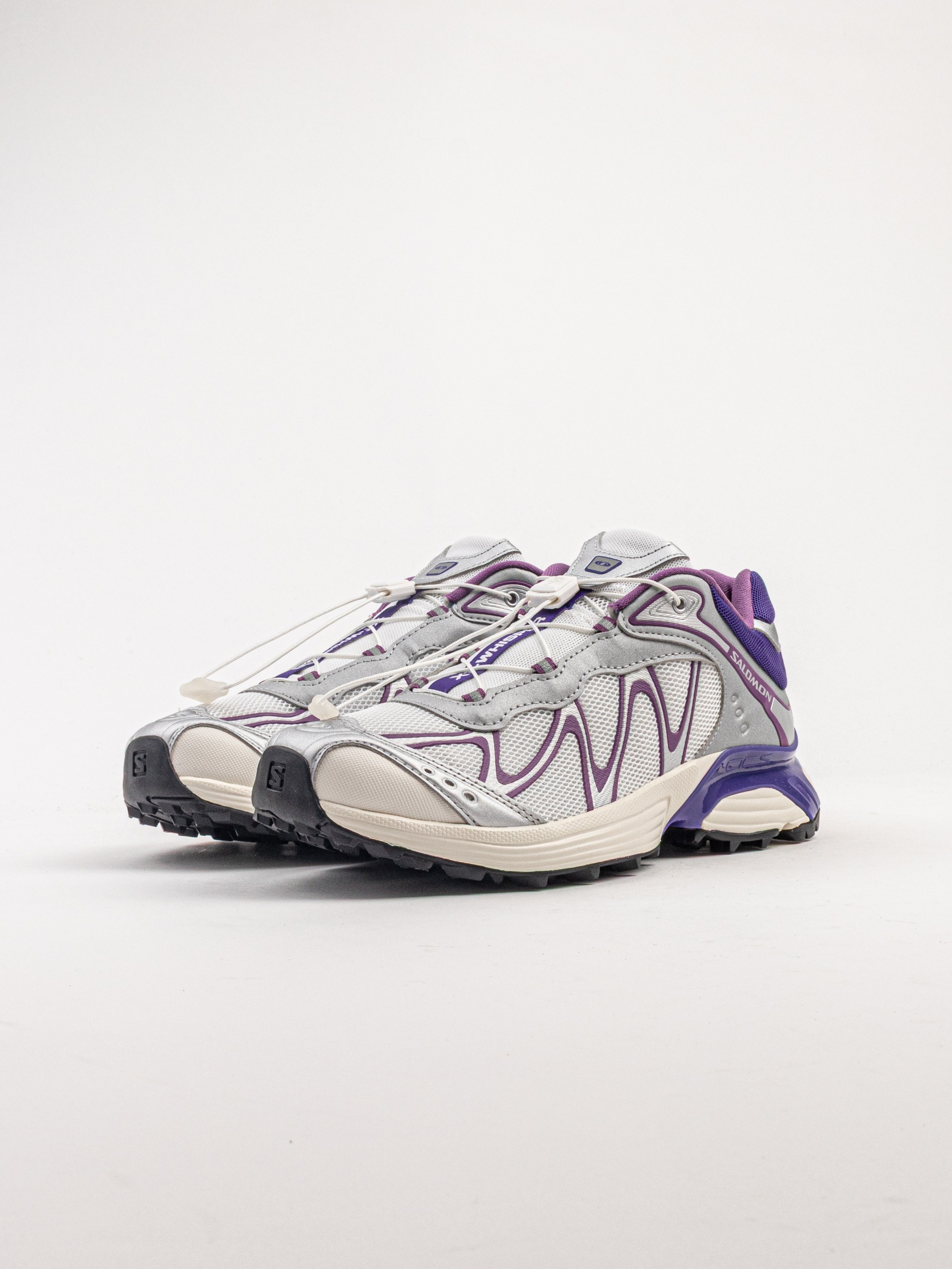 The Salomon XT-Whisper in White / Footwear Silver / Deep Blue merges advanced trail-running technology with a futuristic, street-ready design. Built with a breathable mesh upper and durable synthetic overlays, this silhouette delivers lightweight support and long-lasting comfort. The Advanced Chassis™ system enhances stability and control, while EnergyCell™ cushioning ensures smooth impact absorption for all-day wear. Finished with a Contagrip® outsole for superior traction and the Quicklace™ system for easy adjustment, this model balances performance innovation with modern gorpcore aesthetics.