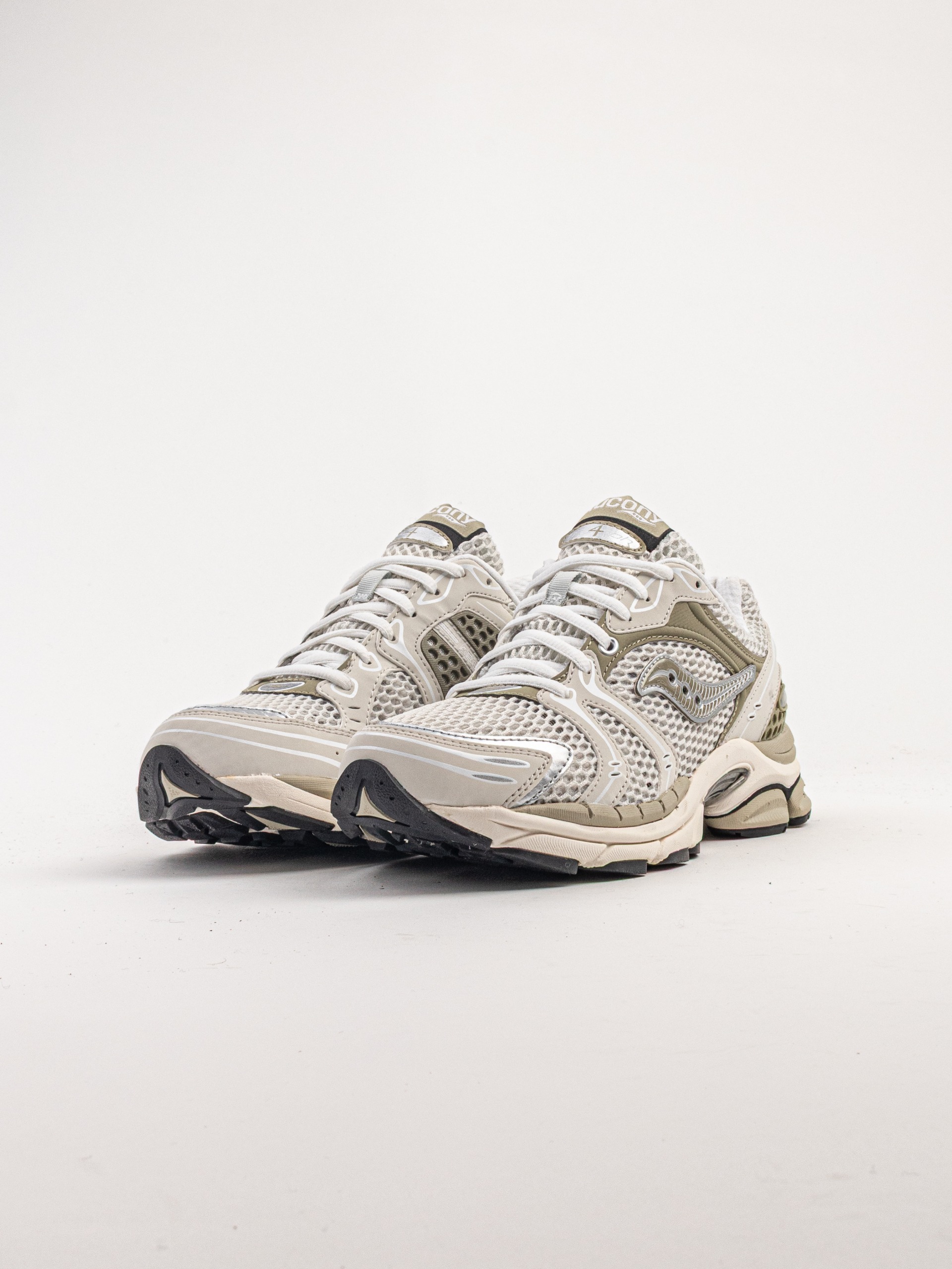 The Saucony ProGrid Triumph White Onyx / Elm revives a premium performance runner with bold late-2000s aesthetics. Designed with breathable mesh, supportive overlays, and Saucony’s ProGrid cushioning system, it delivers a comfortable and stable ride while embracing the technical runner look that defines modern streetwear. The White, Onyx, and Elm color combination adds depth while keeping the silhouette clean and versatile.