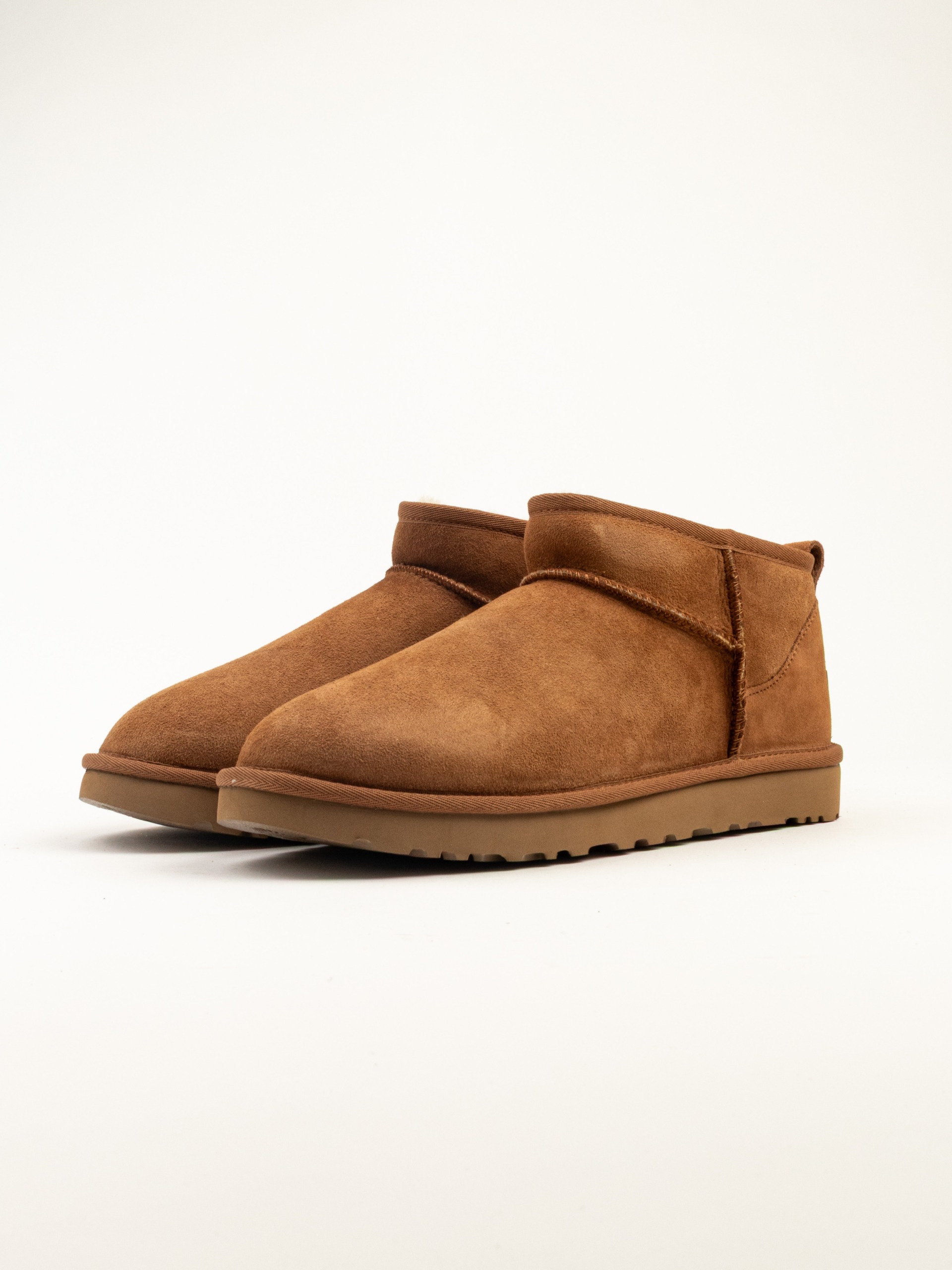 The UGG Classic Ultra Mini Chestnut delivers the brand’s iconic comfort in a clean, low-cut silhouette. Crafted from soft suede and lined with plush UGGplush, it offers warmth and cozy wear with an easy slip-on feel. The shortened shaft gives it a modern look, while the lightweight outsole makes it suitable for both indoor and outdoor use.