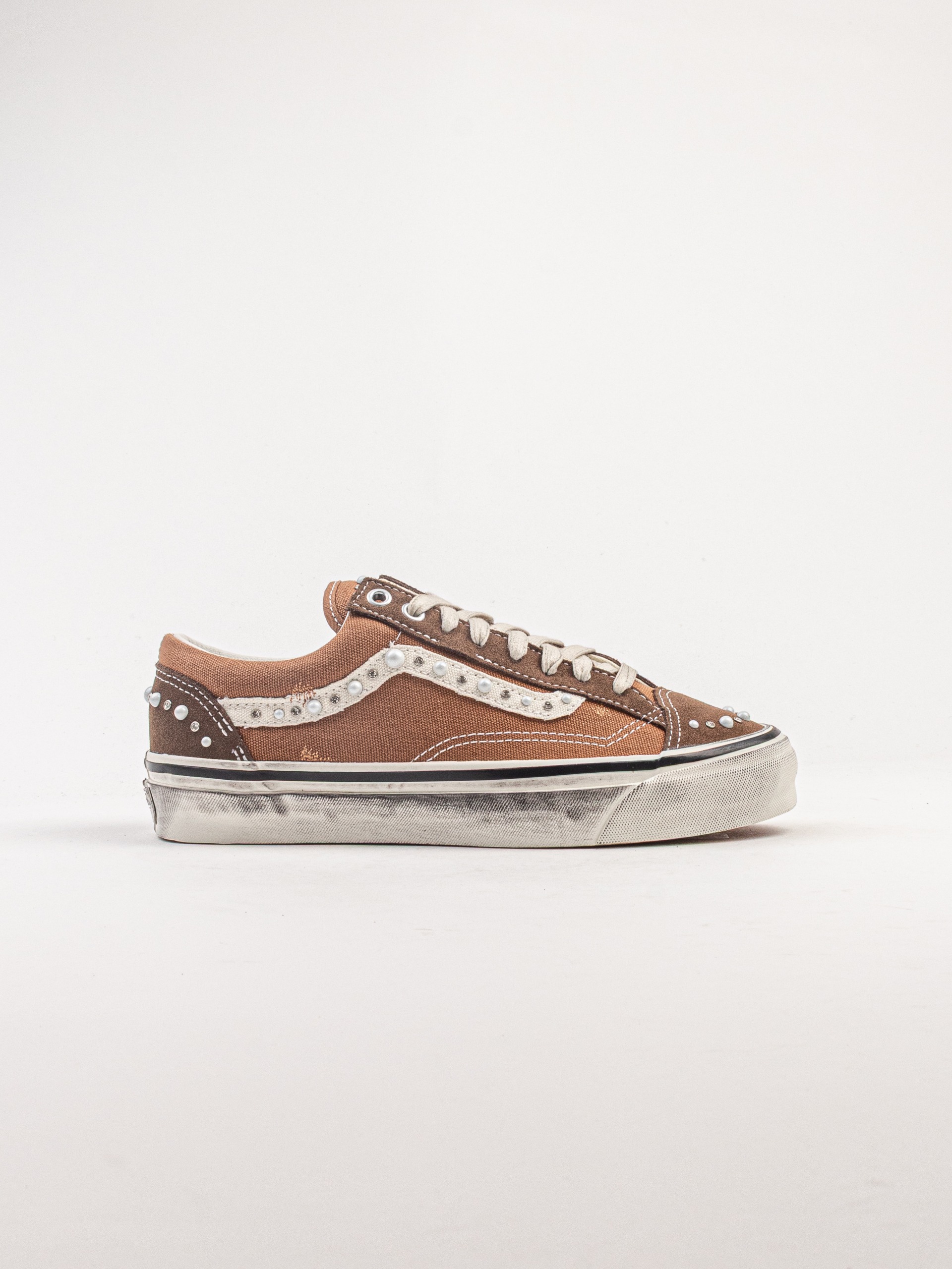 The Vans LX Old Skool 36 in Pearlized Vintage Cocoa delivers a refined take on a skateboarding classic, combining heritage design with elevated materials. Based on the original Style 36 silhouette, it features vintage proportions with a slightly shorter toe box for an authentic retro look. The upper is crafted from premium suede and canvas, enhanced with a subtle pearlized finish that adds depth and texture to the rich cocoa tone. Finished with the signature side stripe and a durable rubber waffle outsole, it offers reliable grip and timeless Vans style.