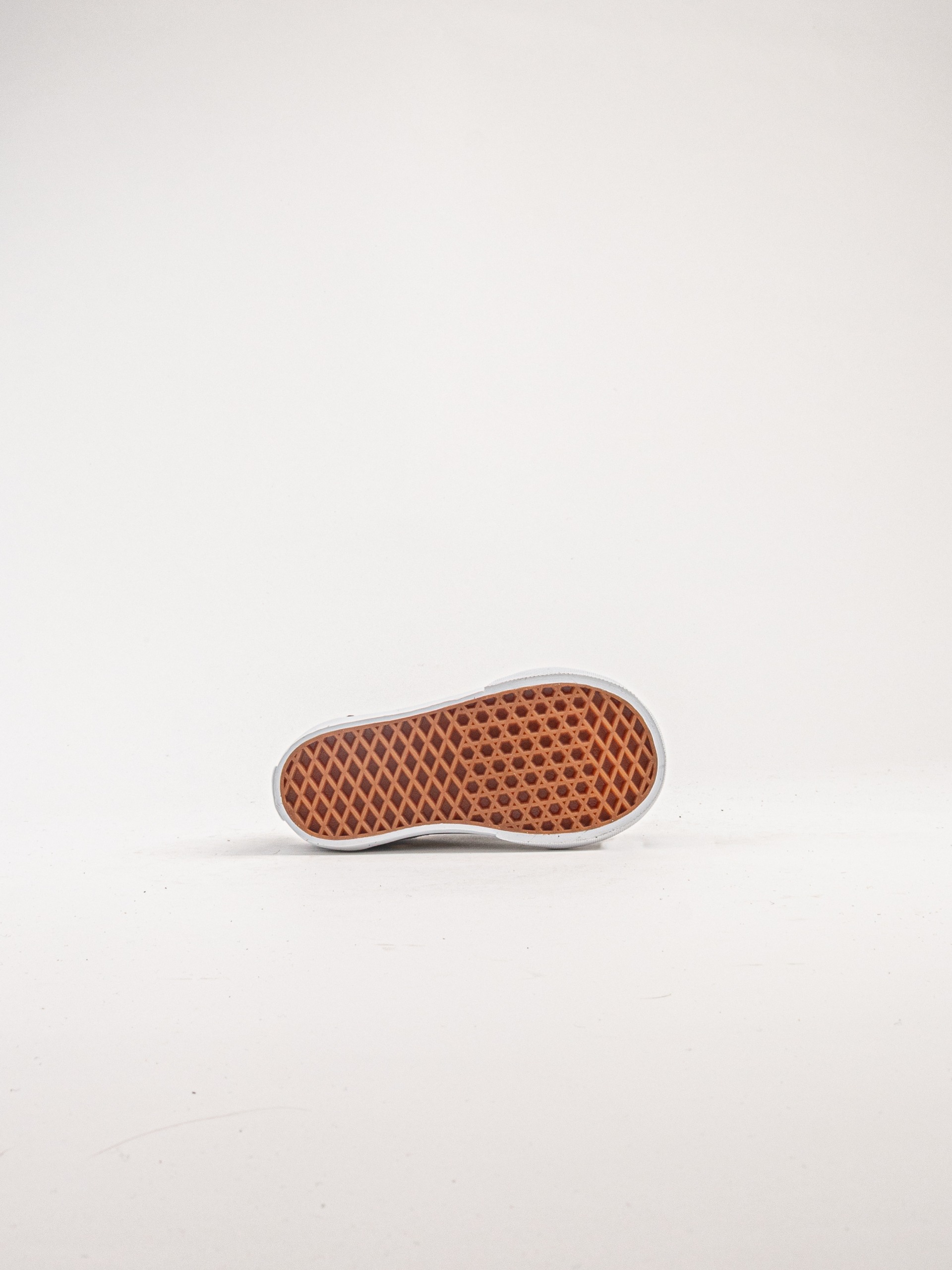 The Vans Old Skool V Black / White keeps the brand’s most iconic silhouette simple and timeless. Crafted with a durable canvas and suede upper, it features the signature Sidestripe and dual hook-and-loop straps for easy everyday wear. A padded collar adds comfort, while the classic waffle outsole delivers reliable grip and that unmistakable Vans feel.